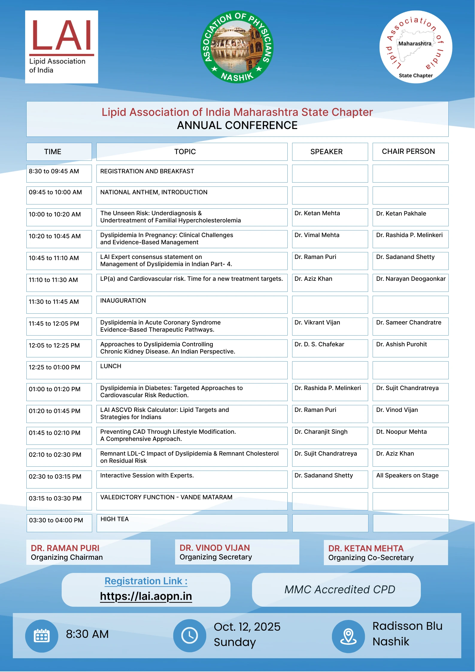 Prior registration is mandetory. For online registration visit us on www.lai.aopn.in
